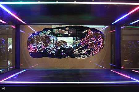 3.与身体、精神的关系。视觉艺术被艺术家理解起到了对人的身体和精神的治疗作用。2006年上海双年展的装置《佛药堂》和2007年《万神殿-ATM搜神机》,实际上是他把单体的中药“佛”演变成一个更加带有空间性和关系美学(与人的身体和精神相关)的装置。显然,展望的假山石系列具有一整套的方法论,而他还有一些其他的作品脱离了这个范畴。虽然这些作品形态不一,但观念有内在一致性,尤其如装置《佛药堂》把物质化的药与精神疗法整合在一起,艺术家的直觉和智慧,体现在对材料的运用和空间转换上,这带给人们很多启发和思考。