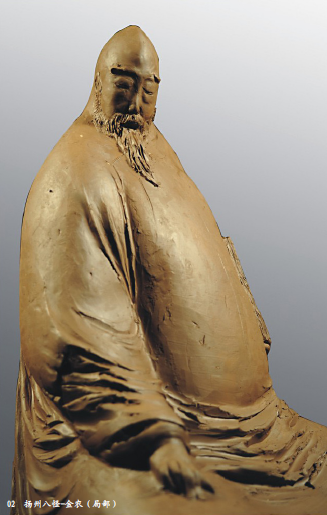 事实上,这种穿越文化历史时空的相互认同在《大江东去》之前早已开始。作于1986年的《知交零落——弘一与丰子恺》就是证明。我喜欢它。我喜欢它的朴素和圆润,喜欢它冷清中的温热,喜欢它洗尽铅华,深藏于平凡中的超尘拔俗。我以为,它也是陈云岗艺术历程中具有标志性意义的作品。只是在那时候,作为雕塑家的陈云岗还处于自我塑造的起始阶段。陈氏雕塑语言在这件作品上仅是一个悠远的显现。但我所说的那种自觉地穿越时空的相互认同在陈云岗却是贯穿于他的整个艺术实践的。到《大江东去》,他收获了历史性的艺术成果。其后是《高山流水》,是《中国老子》,是《竹林七贤》,是《扬州八怪》……这些中国几千年文化历史上的标志性人物各具风采。相通的是,他们都有独立精神的瞬间闪现。不羁的个性,横溢的才情。陈云岗在中国文化历史中寻找相互认同的艺术实践还在继续。
